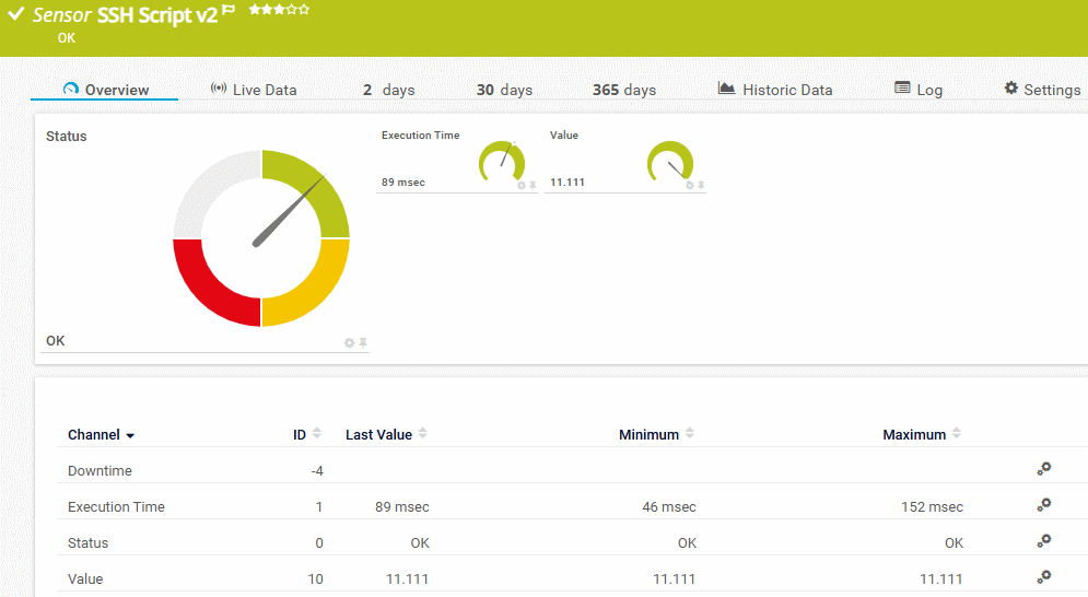 The SSH Script v2 sensor connects to a Linux/Unix system via Secure Shell (SSH) and executes a script file that is located on the target system.